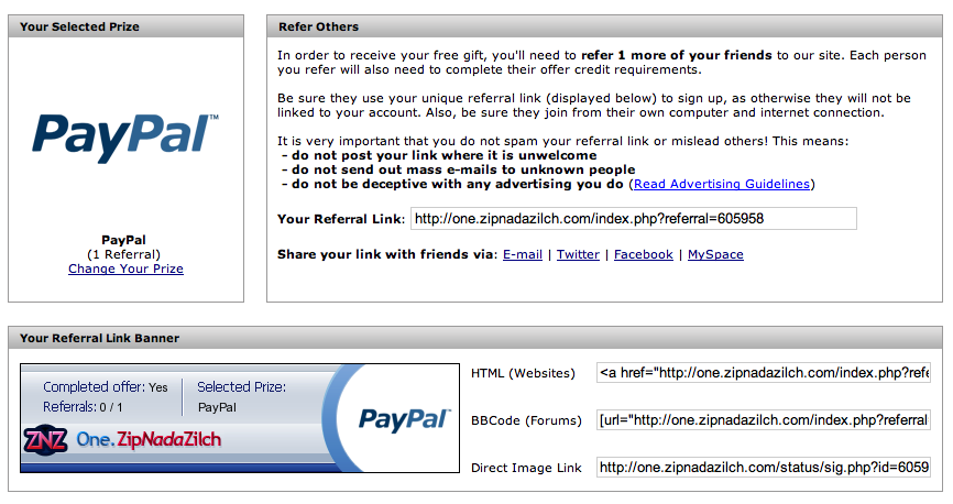 Write down your referral link, and then move on to Step 2--ZNZ Big Cash.